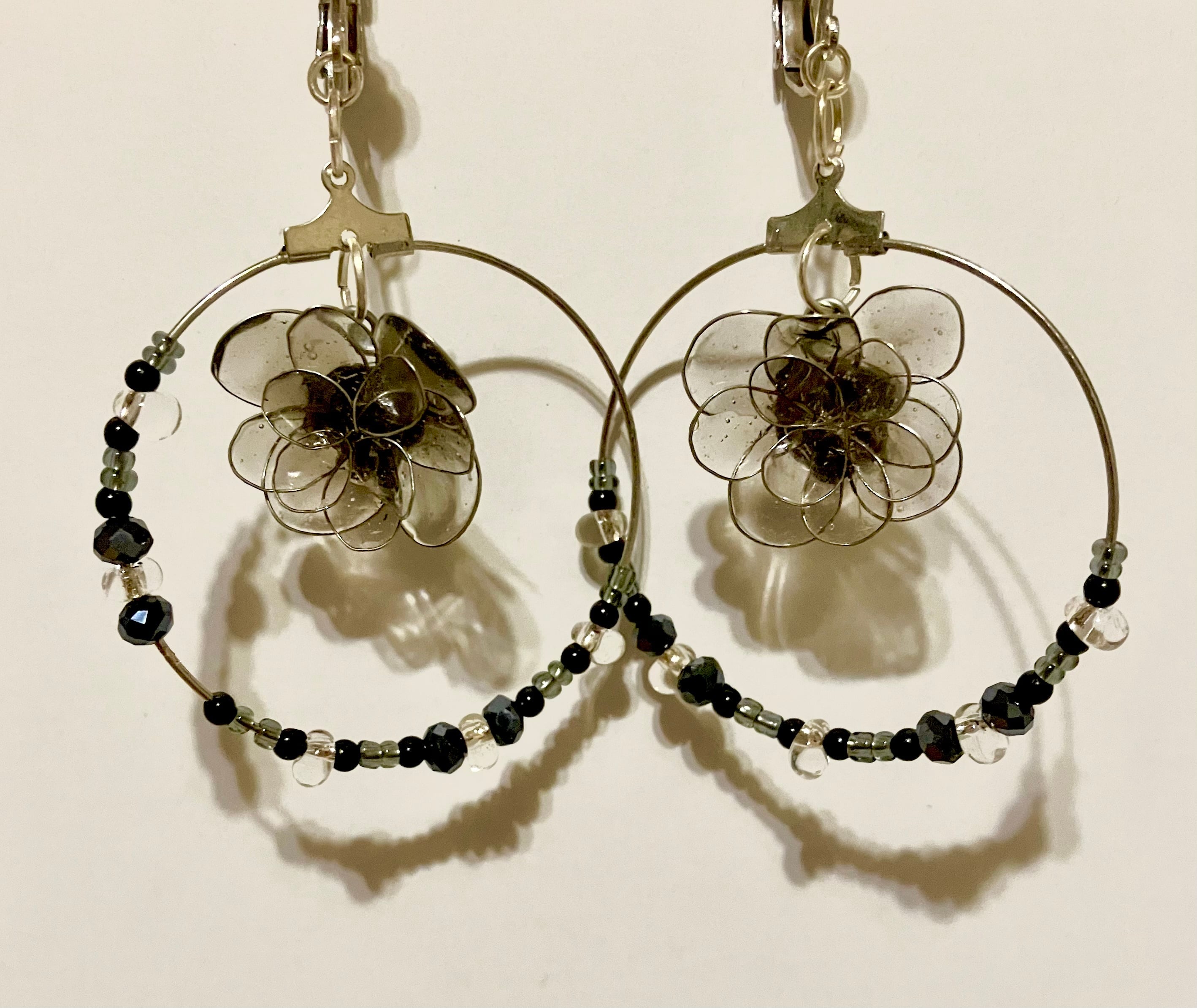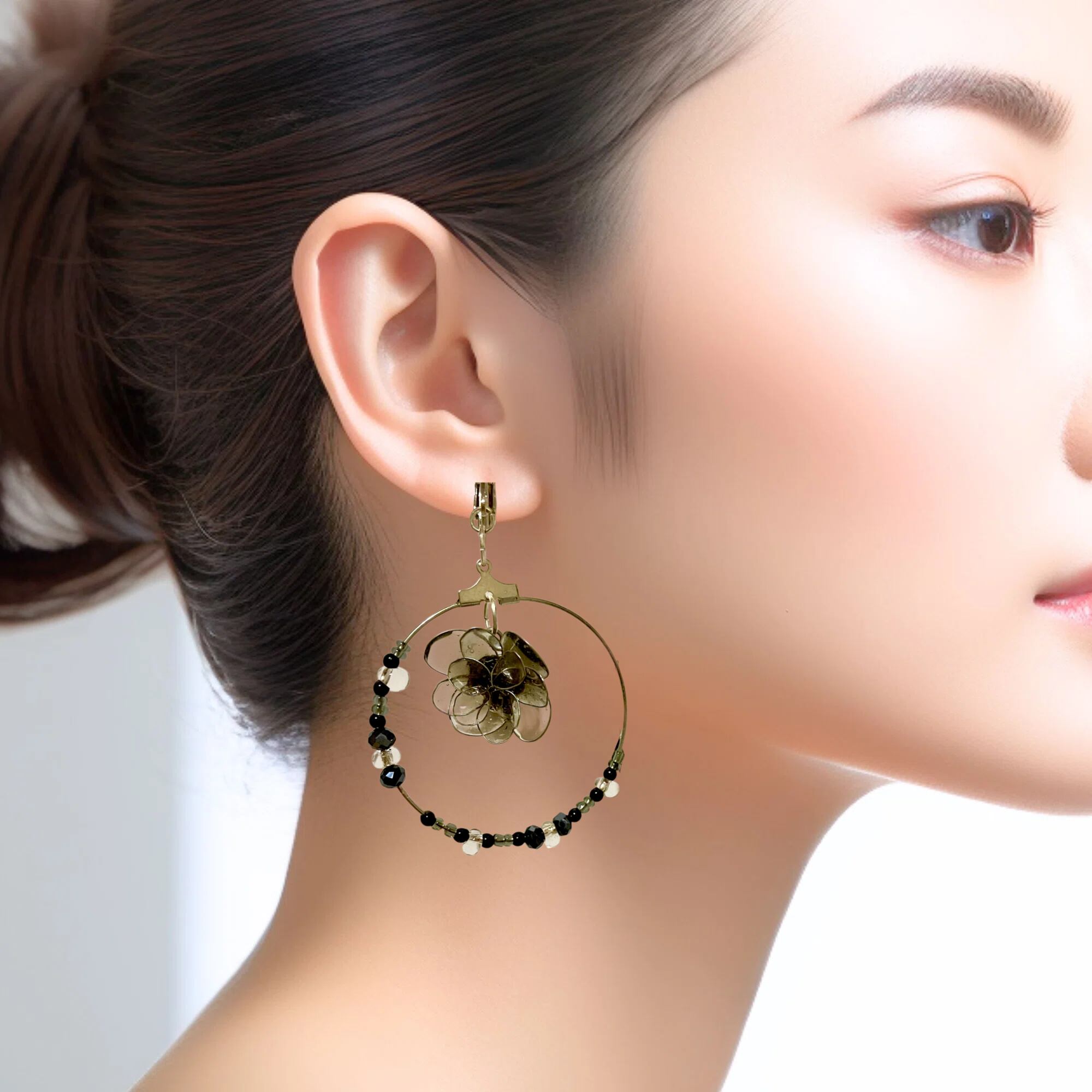 繊細に咲く黒い花と、優雅な円を描くフォルムが印象的なデザイン。