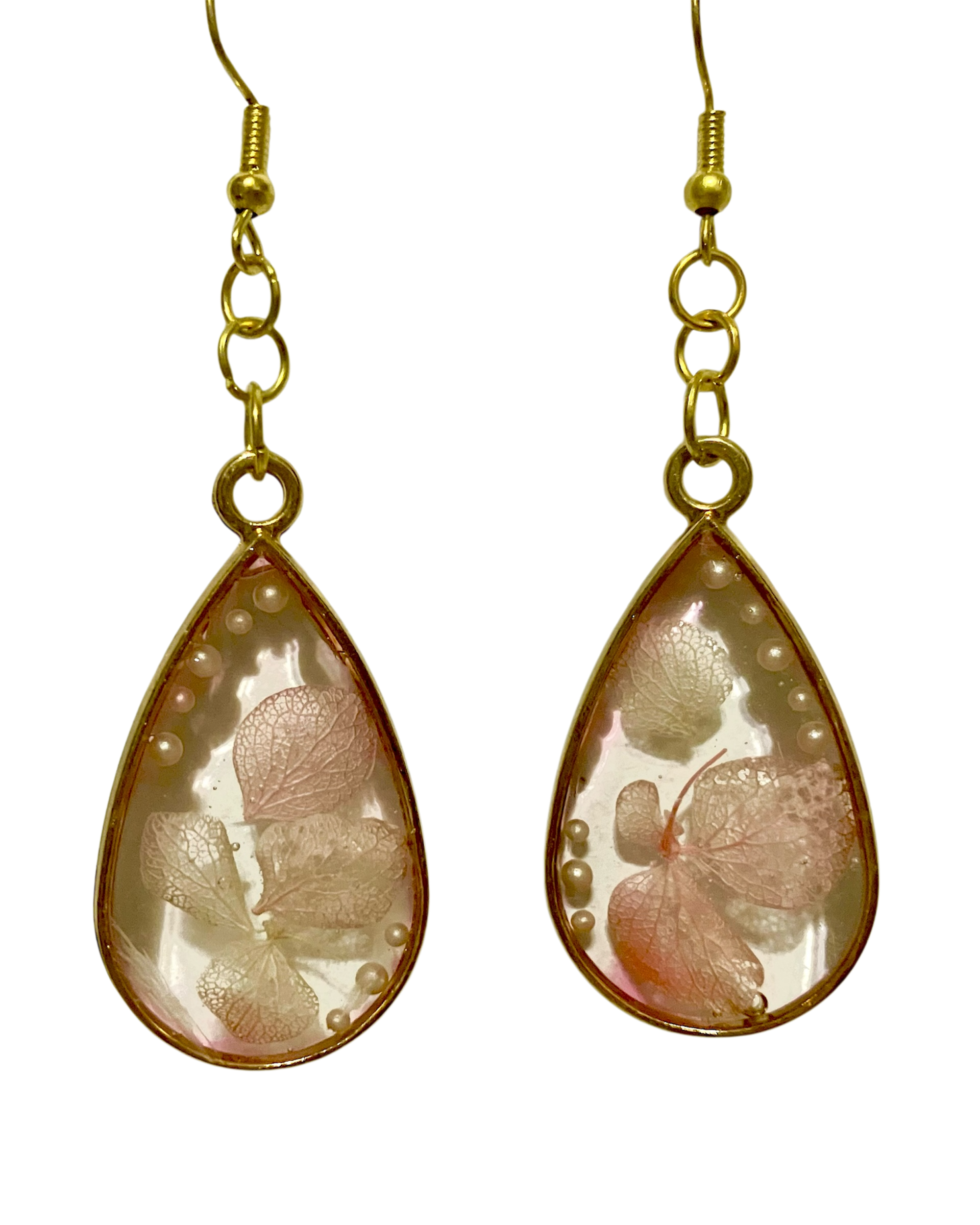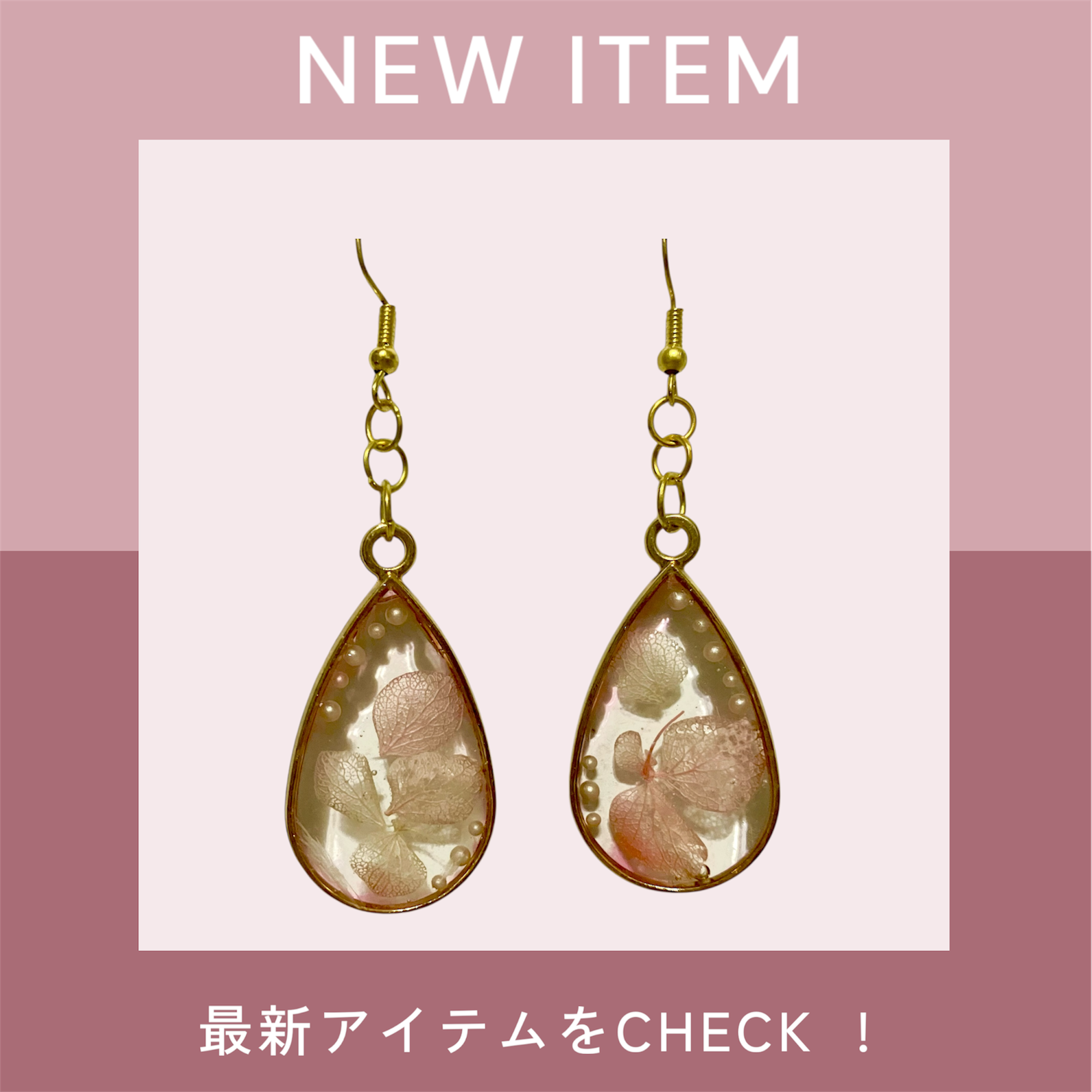 やわらかなピンクの花びらと小粒パールを閉じ込めた、春を感じるピアス。