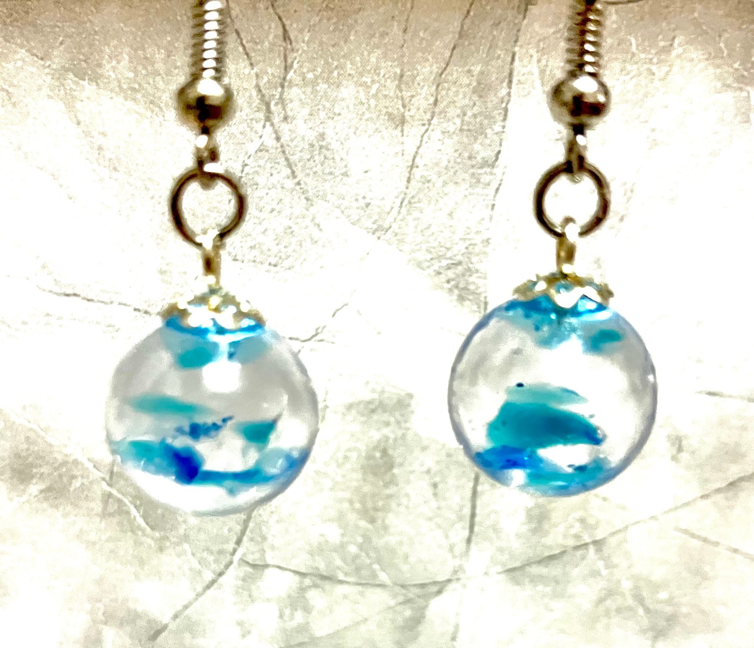水中に透き通るような美しい色合いを再現した水中玉・ピアス。